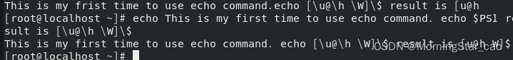 三.输出PS1的内容:This is my first time to use echo command. echo $PS1 result is [\u@\h \W]\$