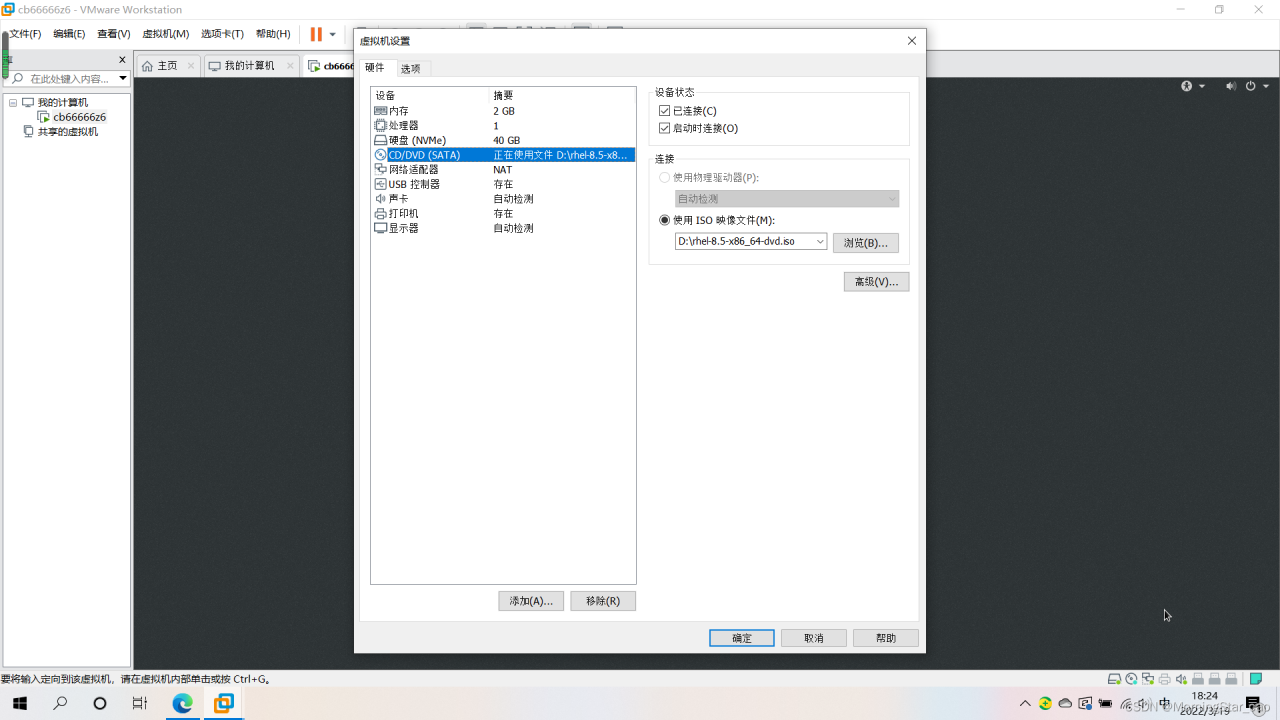 2.开启虚拟机进行配置安装,将设置全部如图设置.