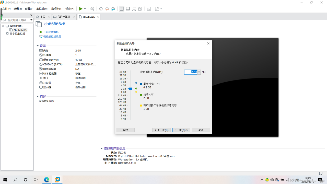 7.选择虚拟机内存根据个人情况来定。