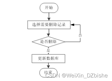 用户选择要删除的信息并单击Delete按钮。系统提示是否删除信息。如果用户想要删除信息,系统将删除信息。系统数据库删除信息。删除信息流程图如图3-5所示。