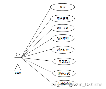 基于医务志愿者管理系统的设计基于现有的电脑,可以实现管理员,用户管理、项目立项、项目申请、项目过程、项目汇总、服务分类、志愿者考核等详细的了解及统计分析。根据系统功能需求建立的模块关系图如下图: