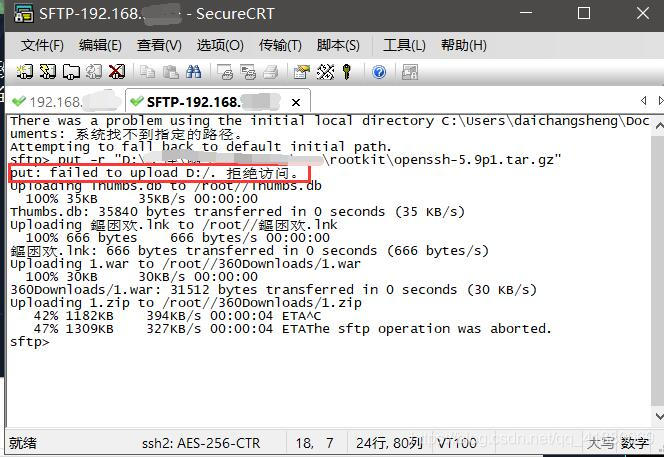 2:put: failed to upload xxx 拒绝访问