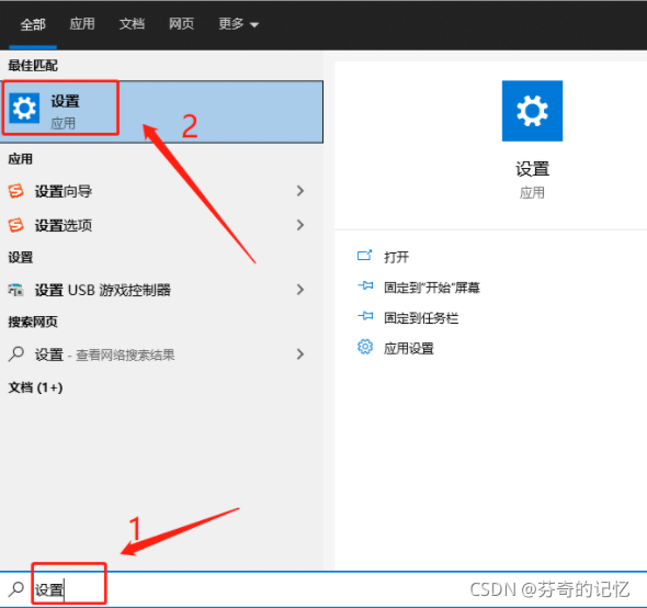 1、”Win+S“ 键 搜索“设置点击进入。.