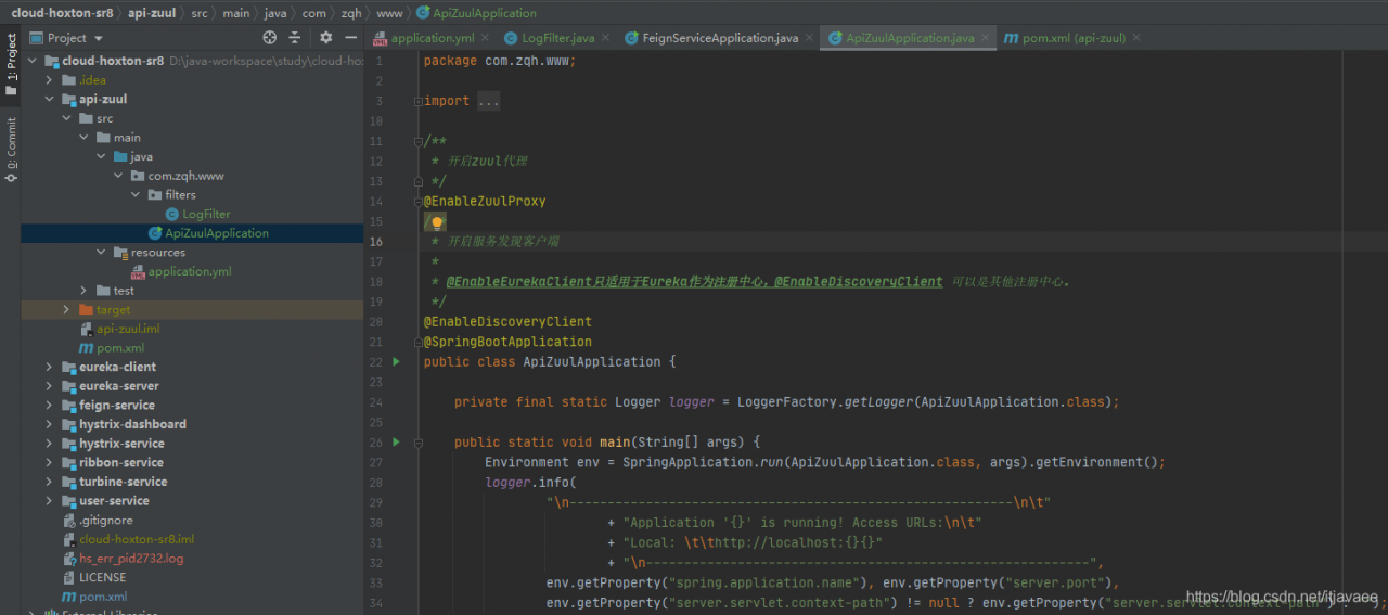 </dependencies>1.2 启动类新增 @EnableZuulProxy 和 @EnableDiscoveryClient