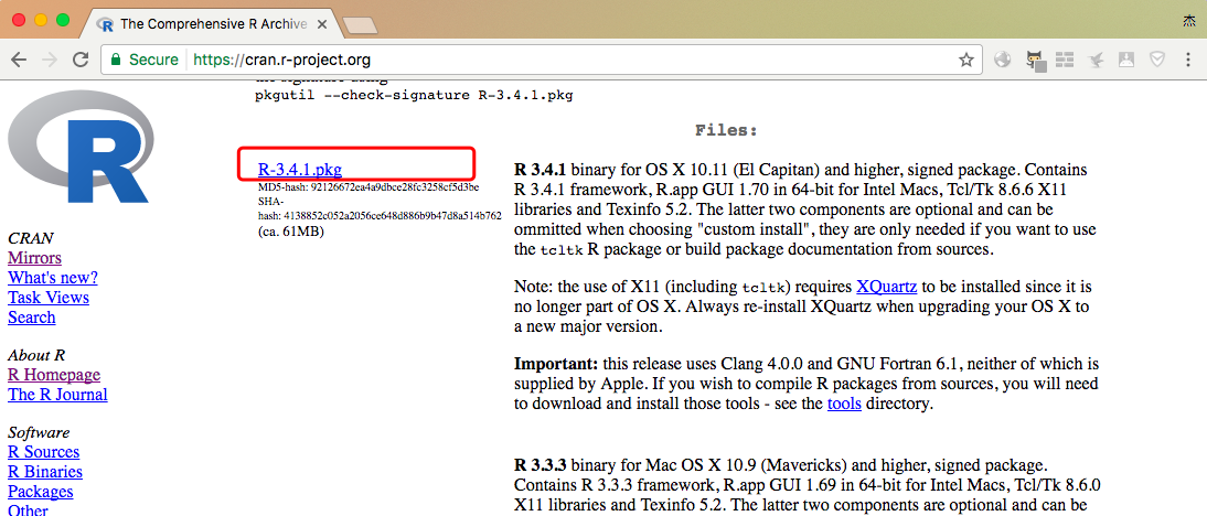 下载下来之后是R-3.1.4.pkg文件,一直下一步下一步安装就可以了。