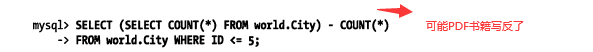 假设上面那个查询会扫描5000行数据,由于在MyISAM中COUNT()函数非常快,前提是没有任何WHERE条件的COUNT(*)才非常快,需要优化成只需要扫描5行数据: