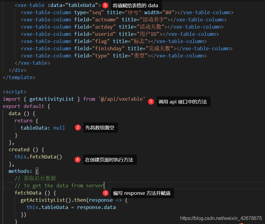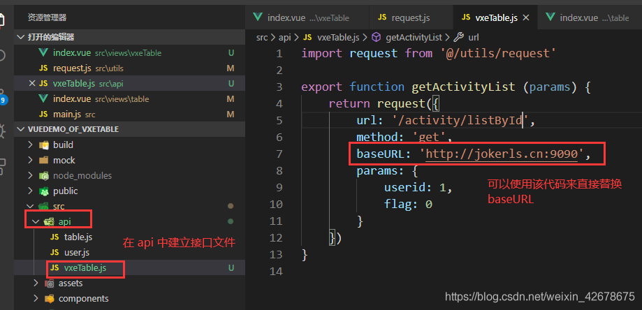 1、在 api文件夹下,建立接口 js 文件( 示例为:vxetable.js )