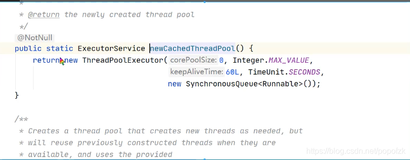 核心线程数传的0,最大是无限,没有界限,如果用这个无限的去创建,而不是复用机制,故不去用!这个api实际开发不用! 可以改成可定长度线程池,这样即使for循环有10个线程创建,但是会被传入的nThread所限制。