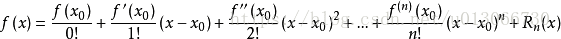 其中表示f(x)的n阶导数,等号后的多项式称为函数f(x)在x0处的泰勒展开式,剩余的Rn(x)是泰勒公式的余项,是(x-x0)n的高阶无穷小。