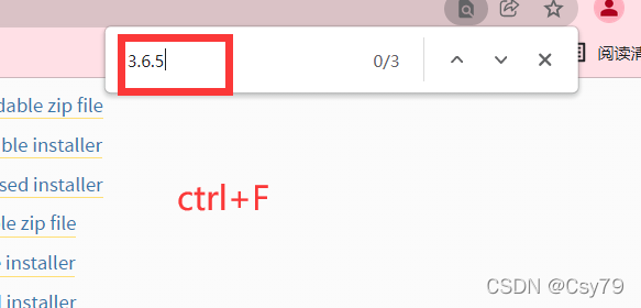 按第一个网址进来后会看到很多版本,我们按ctrl+F查找3.6.5的版本