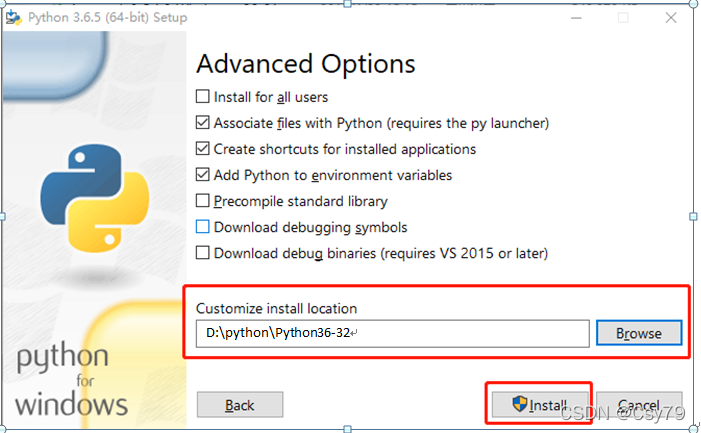 勾选“Add Python 3.6 to PATH”,然后选择“Customize installation”,添加path,是为了以后可以在任何目录下使用cmd运行python,跟java的path一样,如果安装过程中没有添加path,也可以以后再手动添加。