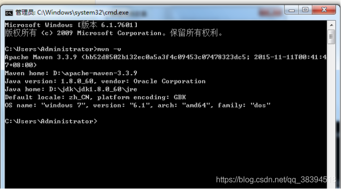 ④在cmd输入mvn –v,如果出现maven的版本信息,说明配置成功。