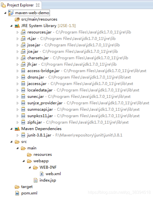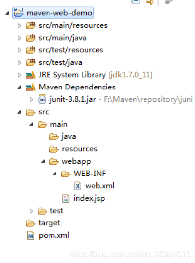 5.创建好项目后,目录如下: ------正常情况下index.jsp会报错