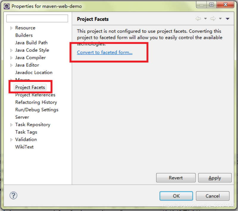 在左侧选择 Project Facets,单击右侧的 ”Convert faceted from “