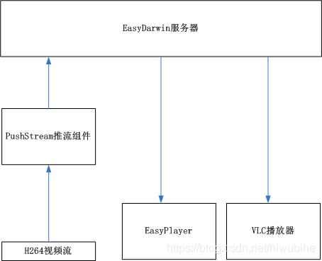 本篇介绍怎么用PushStream推送H264到RTSP服务器上,Demo测试结构如下: