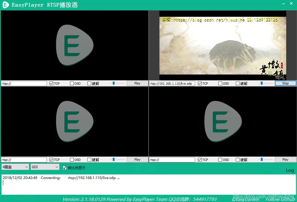 3.打开EasyPlayer播放,VLC也可播放,但是感觉VLC播放延迟比较高。