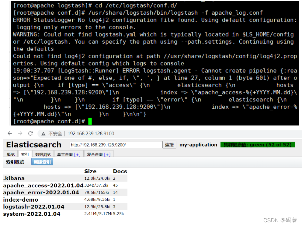 ----分别创建apache_error-* 和 apache_access-* 的索引