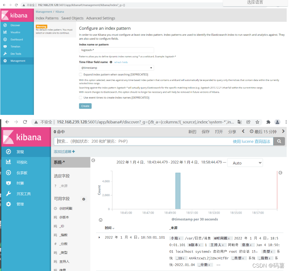 #浏览器访问http://192.168.239.128:5601