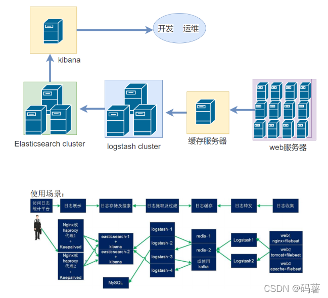ELK 组件在海量日志系统的运维中,可用于解决以下主要问题:- 分布式日志数据统一收集,实现集中式查询和管理
