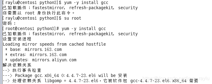 2.如果没有则进行安装,需要sudo权限:yum -y install gcc