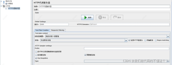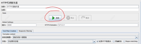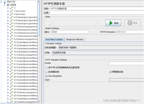 6.启动完成,IE访问环境地址,做想要抓包的操作。操作完成到jmeter点击停止。