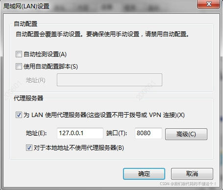 4.IE设置:Internet选项--连接--局域网设置--代理服务器