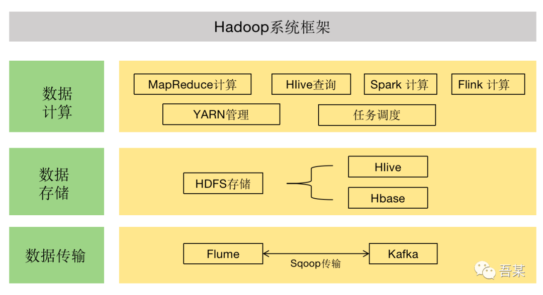 一套完整的Hadoop框架涉及数据传输、存储到计算等环节,并在这些基础上提供种类较多的组件,为快速搭建大数据分析平台提供成熟的基础能力。