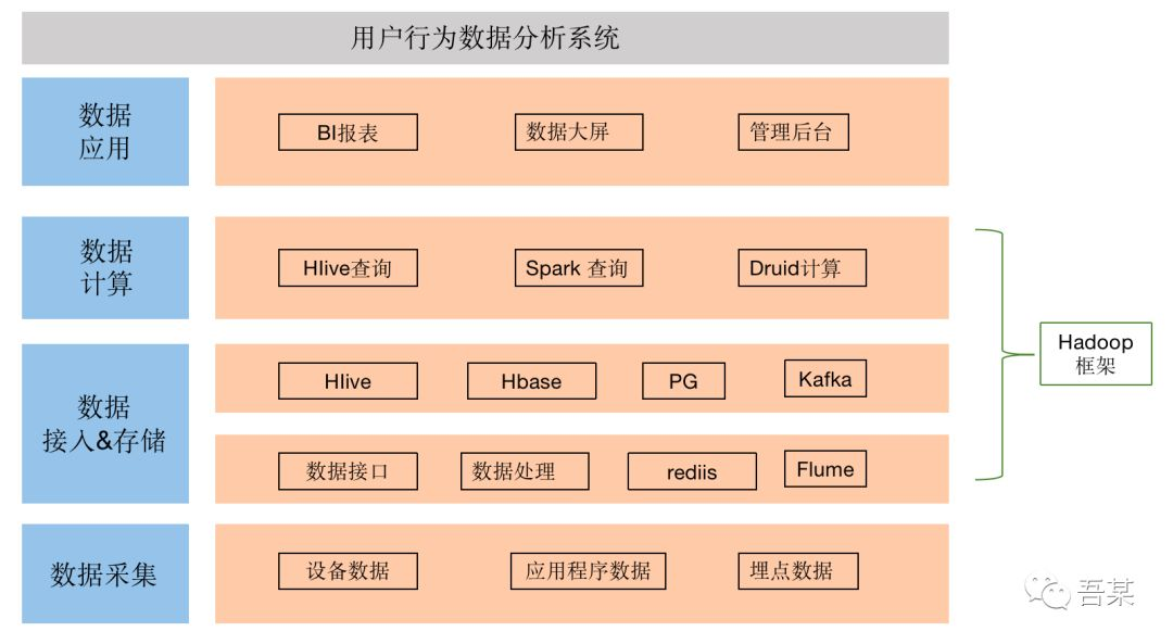 在数据分析领域下,总会被提及诸如SQL、Hive,甚至Hadoop、Druid、Spark等这些技术上的词汇。那么作为一名数据领域的产品经理,听着这些不是很常见的产品知识,又应该具备怎样的技术知识呢?这一章则主要从“用户行为数据“角度介绍一整套的技术架构以及相关的技术要点。
