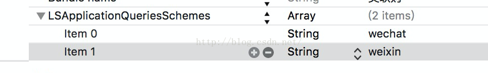 1 2 3 4 5 6 7 8 9 10 11 12 13 14 15 16 17 18 19 20 21 22 23 24 25 26 27 28 29 30 31 32 33 34 35 36 37 38 39 40 41 42 43 44 45 46 47 48 49 50 51 52 53 54 55 56 57 58 59 60 61 62 63 64 65 | <key>LSApplicationQueriesSchemes</key><array> <!-- 微信 URL Scheme 白名单--> <string>wechat</string> <string>weixin</string> <!-- 新浪微博 URL Scheme 白名单--> <string>sinaweibohd</string> <string>sinaweibo</string> <string>sinaweibosso</string> <string>weibosdk</string> <string>weibosdk2.5</string> <!-- QQ、Qzone URL Scheme 白名单--> <string>mqqapi</string> <string>mqq</string> <string>mqqOpensdkSSoLogin</string> <string>mqqconnect</string> <string>mqqopensdkdataline</string> <string>mqqopensdkgrouptribeshare</string> <string>mqqopensdkfriend</string> <string>mqqopensdkapi</string> <string>mqqopensdkapiV2</string> <string>mqqopensdkapiV3</string> <string>mqzoneopensdk</string> <string>wtloginmqq</string> <string>wtloginmqq2</string> <string>mqqwpa</string> <string>mqzone</string> <string>mqzonev2</string> <string>mqzoneshare</string> <string>wtloginqzone</string> <string>mqzonewx</string> <string>mqzoneopensdkapiV2</string> <string>mqzoneopensdkapi19</string> <string>mqzoneopensdkapi</string> <string>mqqbrowser</string> <string>mttbrowser</string> <!-- 人人 URL Scheme 白名单--> <string>renrenios</string> <string>renrenapi</string> <string>renren</string> <string>renreniphone</string> <!-- 来往 URL Scheme 白名单--> <string>laiwangsso</string> <!-- 易信 URL Scheme 白名单--> <string>yixin</string> <string>yixinopenapi</string> <!-- instagram URL Scheme 白名单--> <string>instagram</string> <!-- whatsapp URL Scheme 白名单--> <string>whatsapp</string> <!-- line URL Scheme 白名单--> <string>line</string> <!-- Facebook URL Scheme 白名单--> <string>fbapi</string> <string>fb-messenger-api</string> <string>fbauth2</string> <string>fbshareextension</string></array>例如我的app只涉及到微信端分享,如图: ![]() |