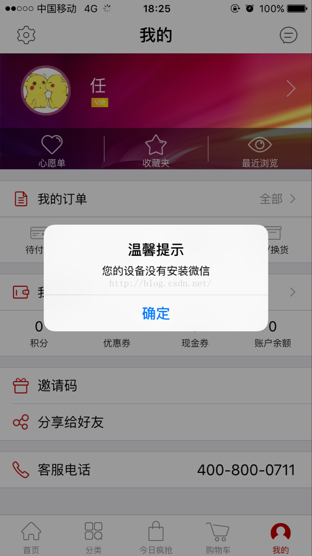 iOS app分享至好友,朋友圈,收藏,在iOS9系统之前,都是没问题的,当在iOS9系统之上的,提示没有安装客户端。如下图:
