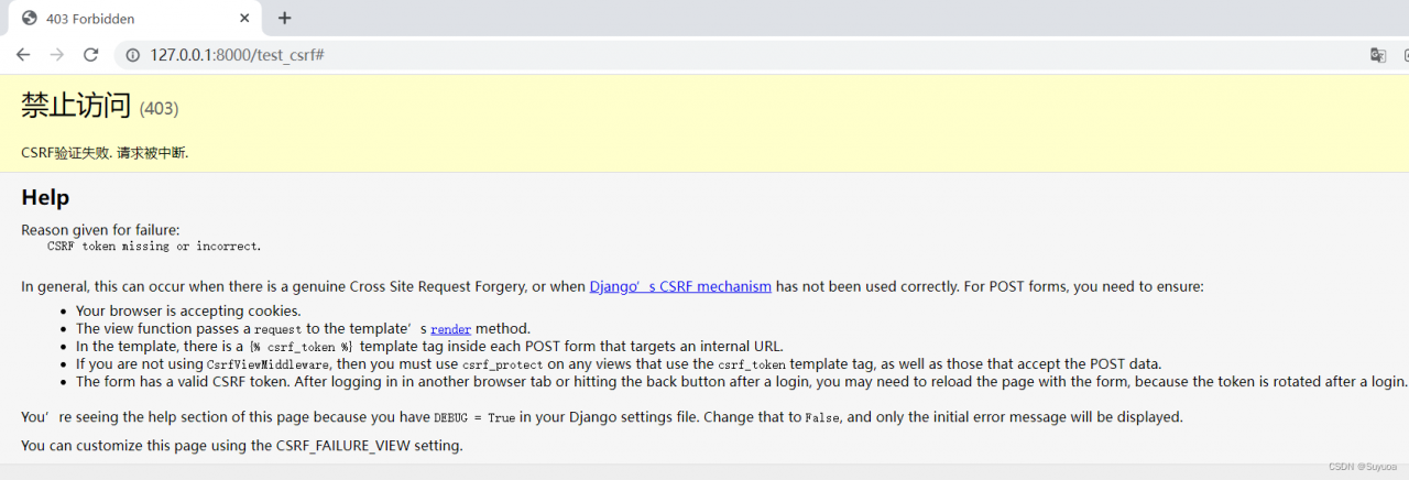 现在我想让该视图不进行csrf校验,我们可以使用csrf_exempt装饰器