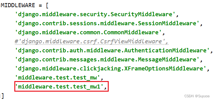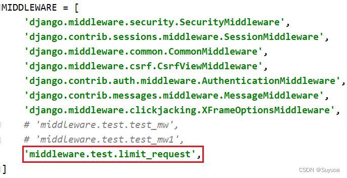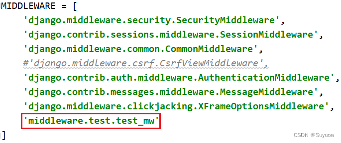 在setting.py中的MIDDLEWARE处已经有一些默认的中间件
