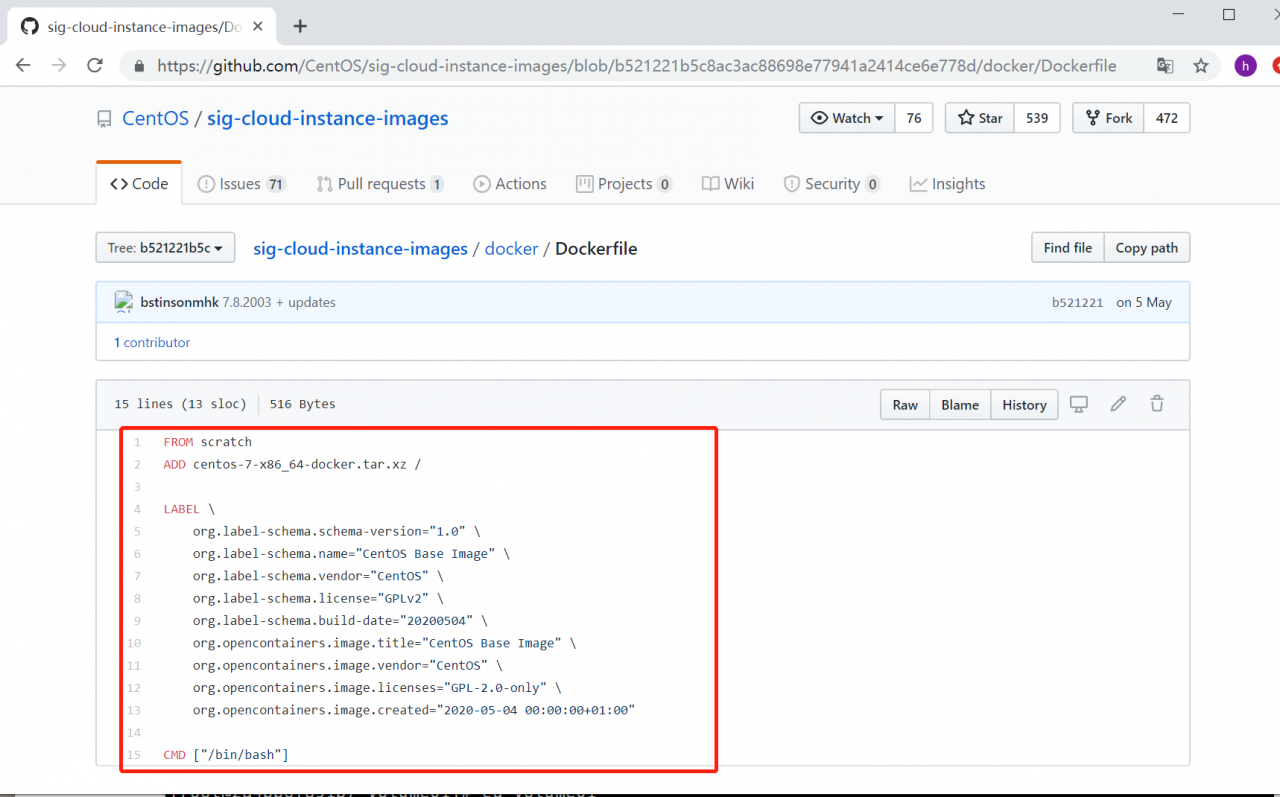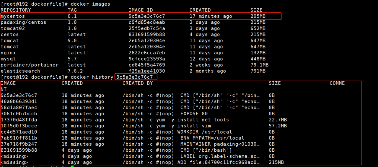 - 可以看到当前这个镜像是怎么一步一步构建起来的
