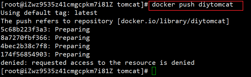 # push 自己的镜像到服务器上!自己发布的镜像尽量带上版本号