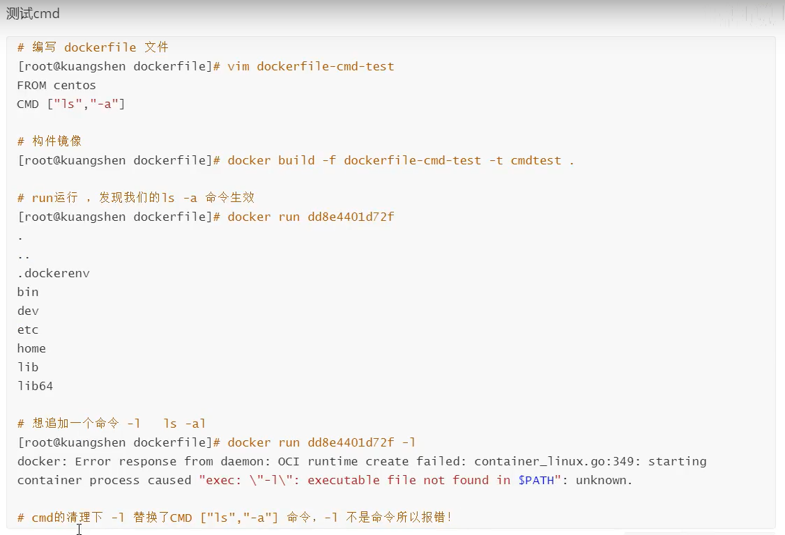 Docker中许多命令都十分相似,我们需要了解他们的区别,最好的方式就是这样对比测试