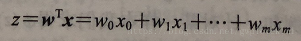 logit函数的输入值范围介于区间[0,1],它能将输入转换到整个实数范围内,由此可以将对数几率记为输入特征值的线性表达式: