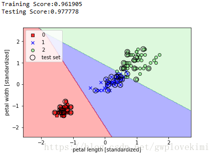 print("Testing Score:%f"%lr.score(x_test_std,y_test))#返回在(X_test,y_test)上的准确率