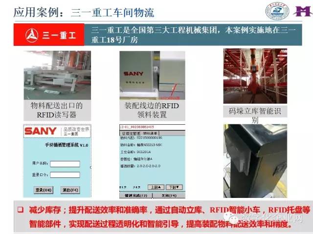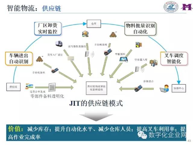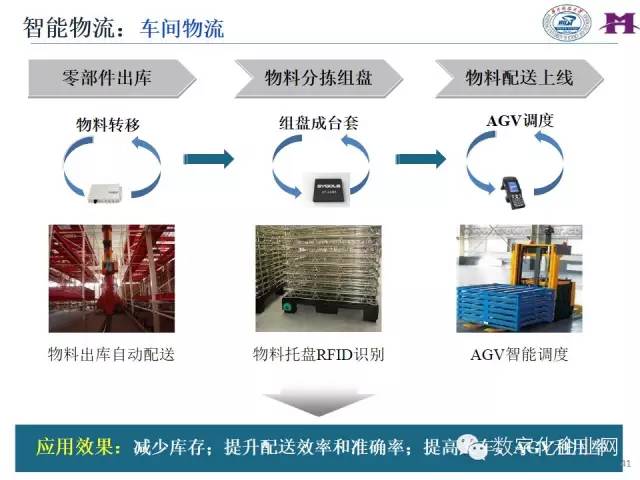 以物料系统自主控制和作业现场精准配为目标,结合RFID、视觉识别等物联网感应设备,研究基于物联信息的物料仓储与精准配送业务的发展目标、技术构成、业务流程和软、硬件构建方案,引导实现物料配送方案的准时生成和全车间的精准柔性配送。主要内容包括: