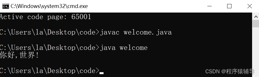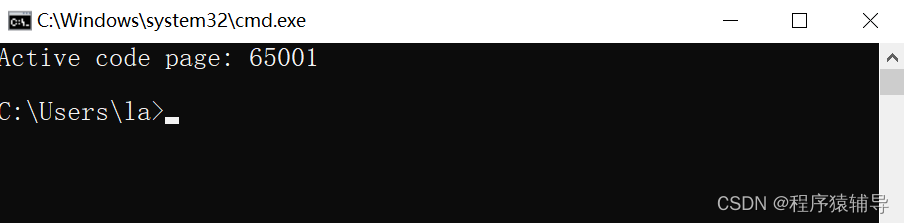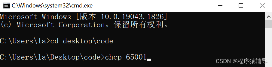 第一种:通过输入chcp 65001命令修改当前代码页为UTF-8,即可输出中文字符样式,不过是临时有效的,退出命令窗口再进入当前代码页恢复为936