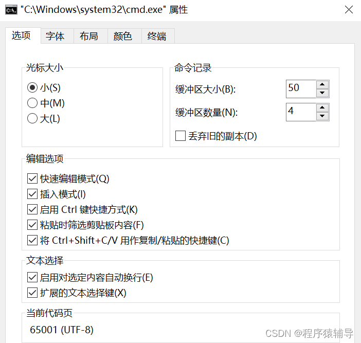 这种方式跟第一种类似,但进入命令窗口会自动更改为65001,当前代码页也是一样