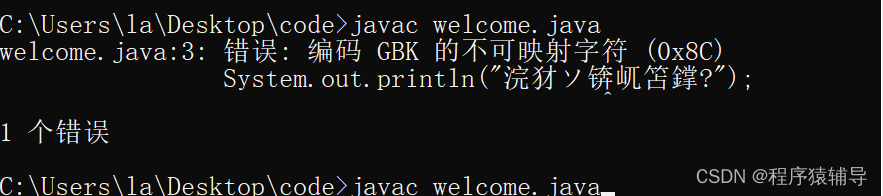 当用DOS命令窗口写java代码进行编译时出现乱码、错误情况,如下图: