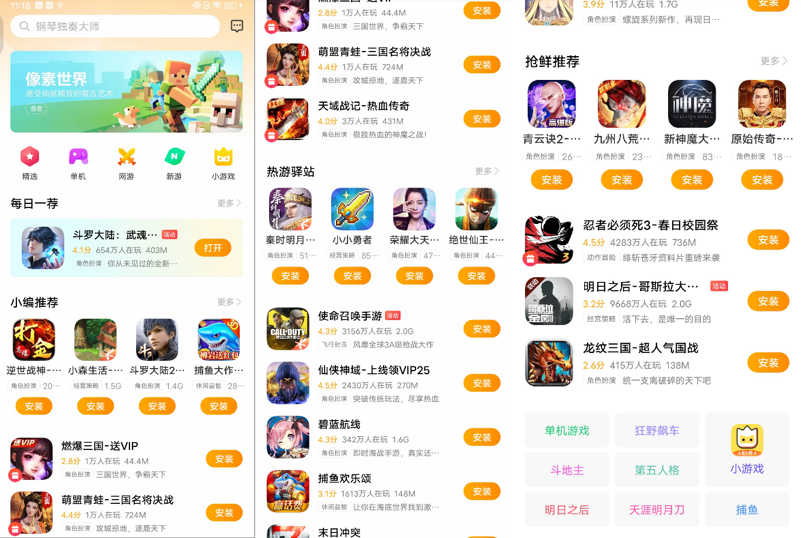 目前,游戏中心首页和新游专区改造成了模块化页面。首页是游戏中心非常重要的分发渠道,模块化要求页面形式多种多样,同时假如模块化改造不被用户认可的时候也要能够动态回退。