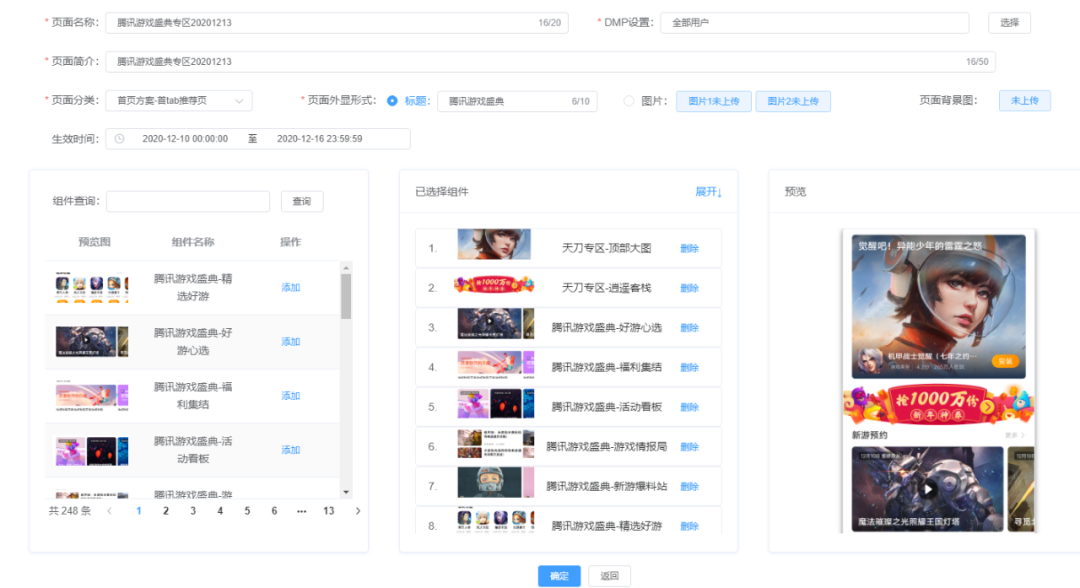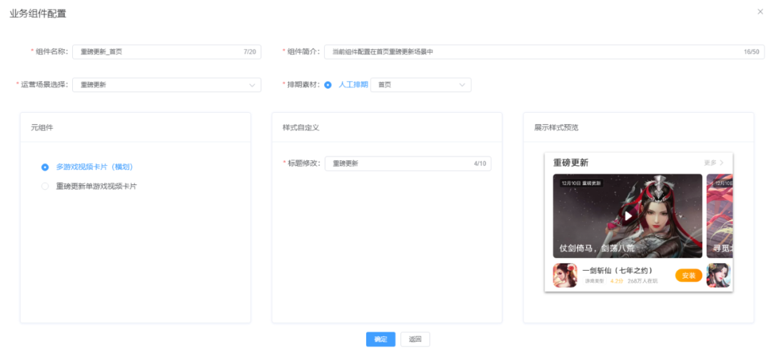 如图7,当前重磅更新场景关联的是人工排期(如果关联的是推荐,则是推荐对应的code),配置好样式后整个业务组件也就配置完成了。然后在页面管理中将你想要配置的组件添加到某个页面中,设置好对应的DMP。配置好组件后,在后台页面上可以滚动进行整体页面效果预览。