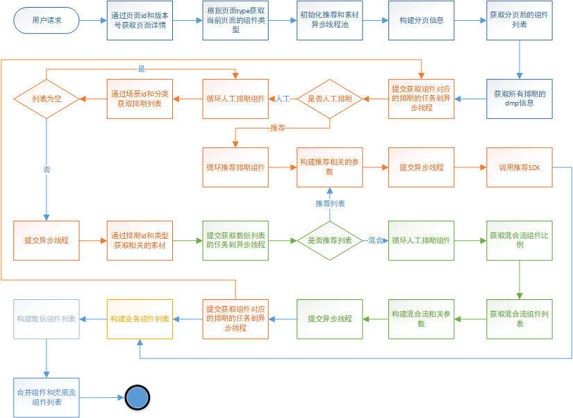 归纳后的流程如下图所示。我们可以把提交异步线程池进行归纳,可以理解为获取组件列表和混合数据列表为两个步骤。