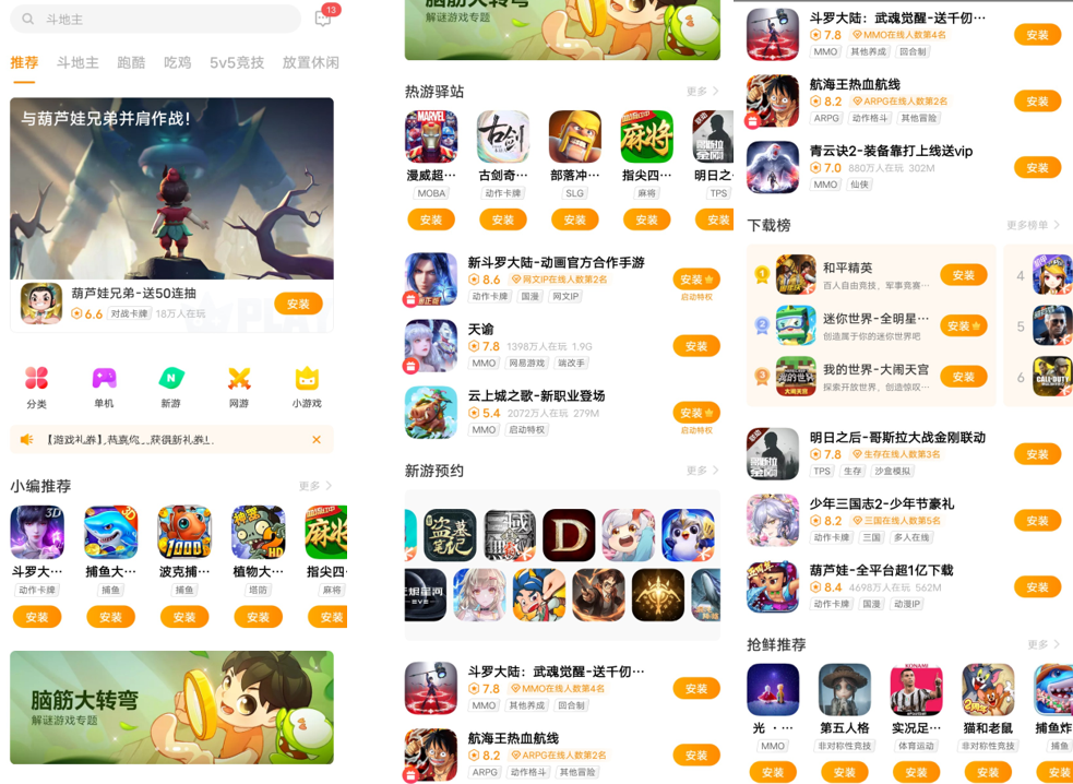 不同的组件可以满足不同的业务场景。例如单游戏大图组件,辅以推荐,可以快速推广新游和热游,满足了不同用户对不同游戏节点的需求;新游预约组件可以从更多角度满足用户对于单款游戏提前订阅内容或关注其实时动态的需求。