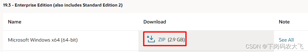 这里使用19.3c版,此时注意,window系统要求必须是win8以上(建议win10), win7有个无解的bug导致OracleOraDB19Home1TNSListener服务无法启动,导致orcale服务器启动失败。