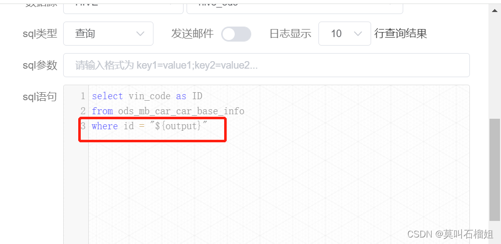 (2)sql任务时参数的key值一定和sql语句中的字段名保持一致,否则不识别