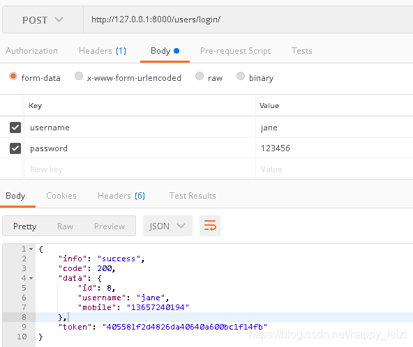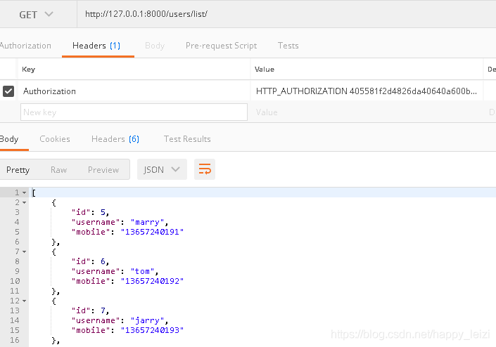 然后需要认证的视图,前台每次请求需要在请求头中携带token,后端然后对token进行验证缺点:每个用户登录一次就需要生成一条token记录保存在数据库里,当用户量大的时候,就会增加后台服务器压力!