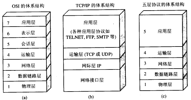OSI七层协议体系结构的概念清楚,理论也较完整,但它既复杂又不实用。TCP/IP协议体系结构则不同,但它得到了广泛应用。TCP/IP是一个四层的体系结构,它包含应用层、运输层、网际层和网络接口层(叫网际层是因为该层是为了解决不同网络的互连问题),不过从本质上来讲,TCP/IP只有最上面的三层,因为最下面的网络接口层并没有什么具体内容。因此在学习计算机网络时往往综合OSI和TCP/IP的优点,采用一种五层协议的体系结构