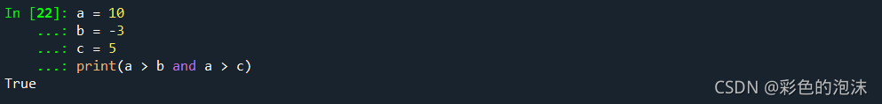 1.对于连续比较a>b>c可以写为 a>b and a>c